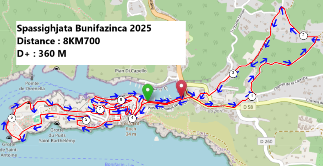Départ à 17H30’ devant la Pharmacie de la Marine de Bonifacio pour une boucle dans la campagne bonifacienne puis direction les escaliers, les falaises et le marché de Noël de la Haute Ville avant de revenir sur la Marine pour l’arrivée ( parcours définitif en ligne dans quelques jours).
