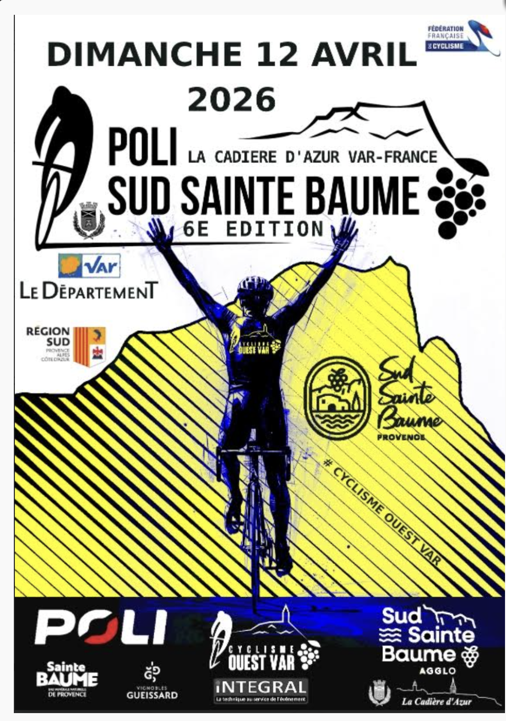 Pour 2026 nous allons renouveler l'édition inédite de 2025 grâce à la municipalité de la CADIERE d' azur et la communauté d'agglomération de SUD Sainte BAUME, le nouveau parcours sera légèrement revisité, celui-ci inclura à nouveau un passage dans le territoire de sud sainte Baume dans sa partie finale et sera décliné en 2 distances : 90 et 130 km comme l'an passé avec en plus une formule randonnée libre non chronométrée d'environ 60 km ouvert à tous les types de vélos qui reprendra le début et la fin du circuit soit environ 60 km !, les ravitaillements, la collation d'arrivée et la sécurité habituelle seront assurés par nos soins et l'aide de nos fidèles intervenants, Nous souhaitons donc vous voir nombreux au départ et vous retrouver souriants à l'arrivée, satisfaits de votre prestation.