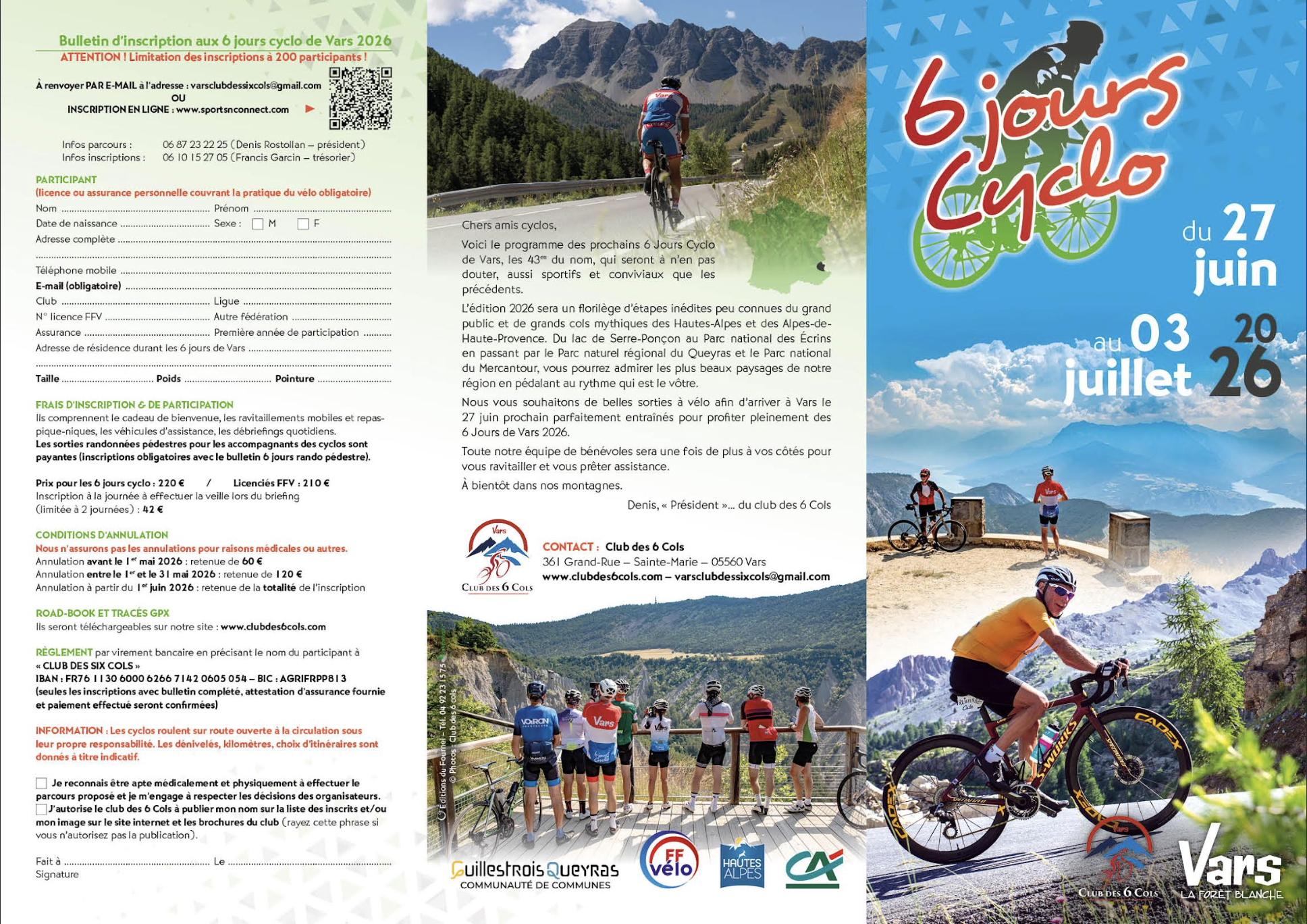 Nous vous souhaitons de belles sorties à vélo afin d’arriver à Vars le 27 juin prochain parfaitement entraînés pour profiter pleinement des 6 Jours de Vars 2026.