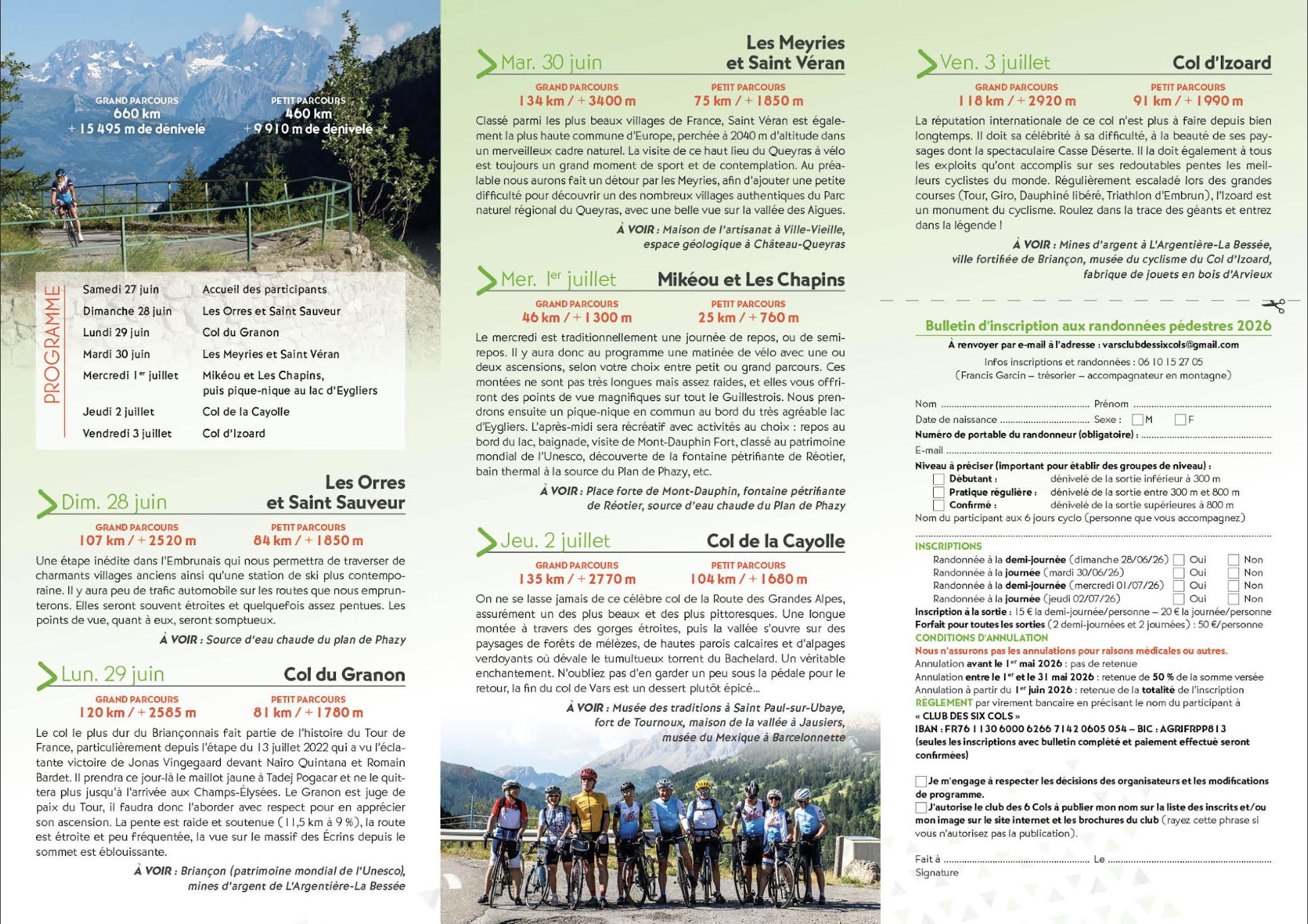 (Inscriptions obligatoires avec le bulletin 6 jours Rando).