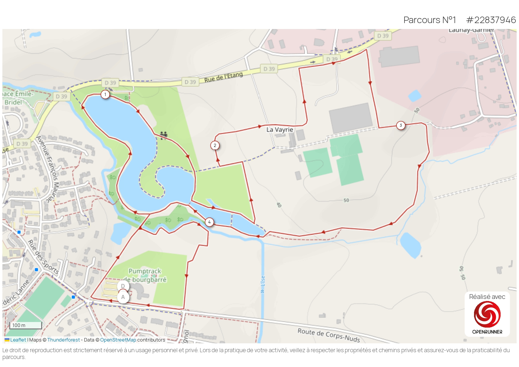 Le parcours, tracé autour de l’étang de Bourgbarré, offre un cadre verdoyant et varié, mêlant chemins, sentiers et paysages naturels.