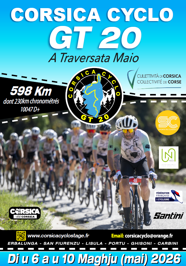 La 5ème édition de la Corsica Cyclo GT 20 « A Traversata Maio » aura lieu du 6 au 10 Mai prochain.